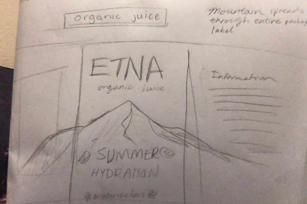 I decided to use Mount Etna and the goddess to show that it is a product made in Italy, specifically from the biggest island in the Mediterranean; Sicily. Yes, I note the discrepancy for confusing geography being something to correct.
